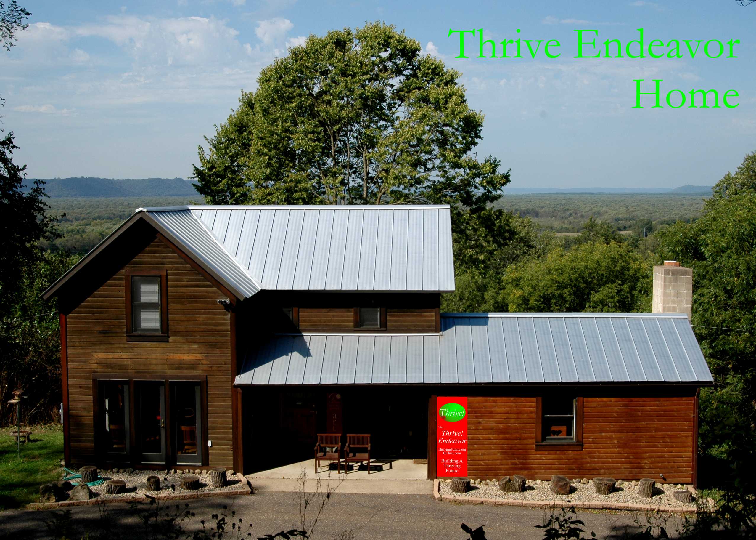 The home of the Thrive Endeavor is on a Mississippi River bluff side in a restored 1885 farmhouse, barn and beehouse nestled 100 feet above the Village of Nelson (WI). It is surrounded by Thrive! Park, a 25+ acre, bluff side, public park donated by Chris. This is where Gary “Chris” Christopherson, founder of Thrive! and the Thrive! Endeavor, lives and works.